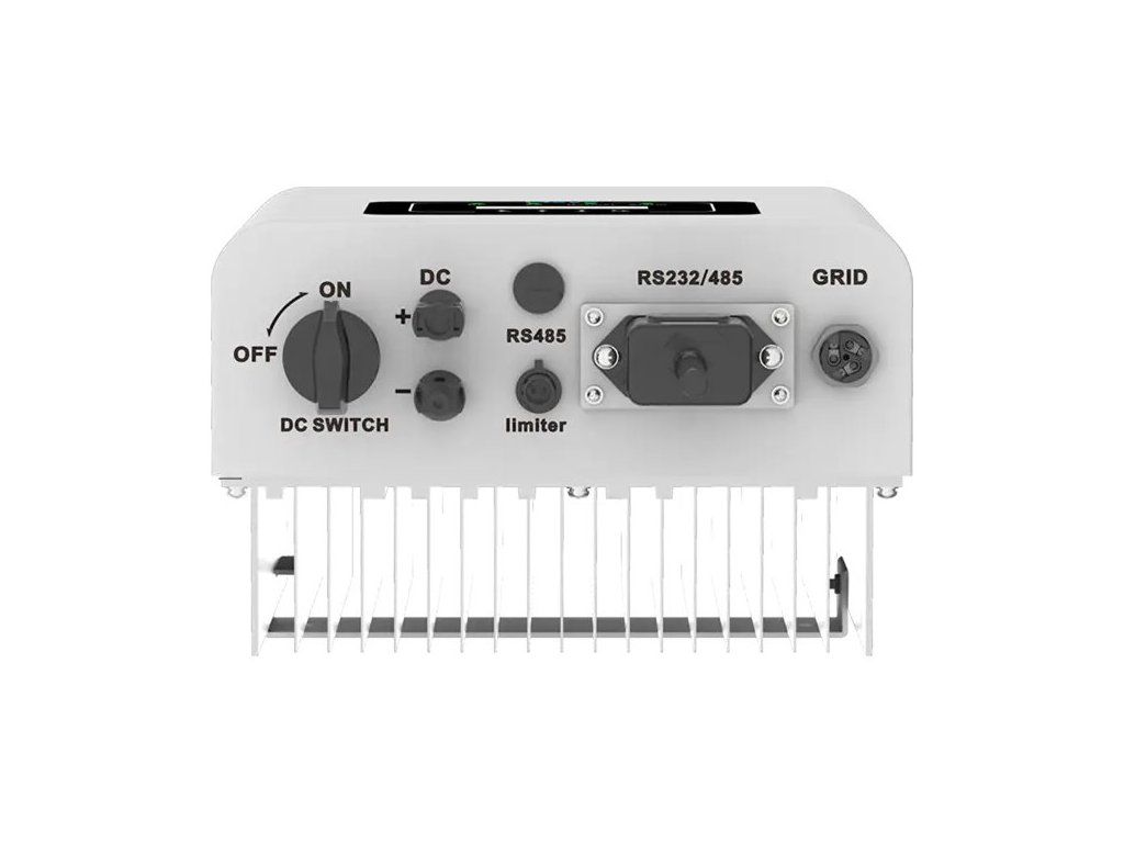 Síťový měnič s integrovaným limiterem pro zabránění přetoků do veřejné sítě. Měnič díky integrovanému MPPT regulátoru převede maximum energie vyrobené fotovoltaickými panely na 230 V (AC).