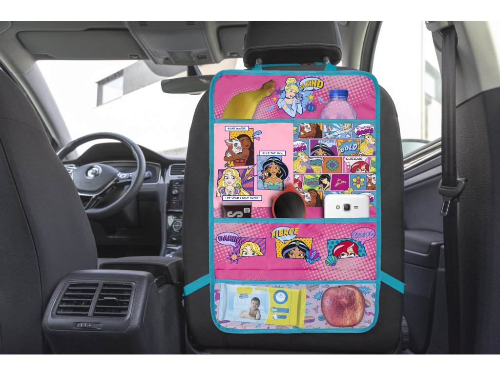 Udržujte v autě i v kočárku královský pořádek! Tento multifunkční organizér s motivem oblíbených Disney princezen je nepostradatelným doplňkem pro každou cestu s dětmi. Spojuje v sobě praktický úložný prostor a účinnou ochranu sedadla v jednom stylovém balení.