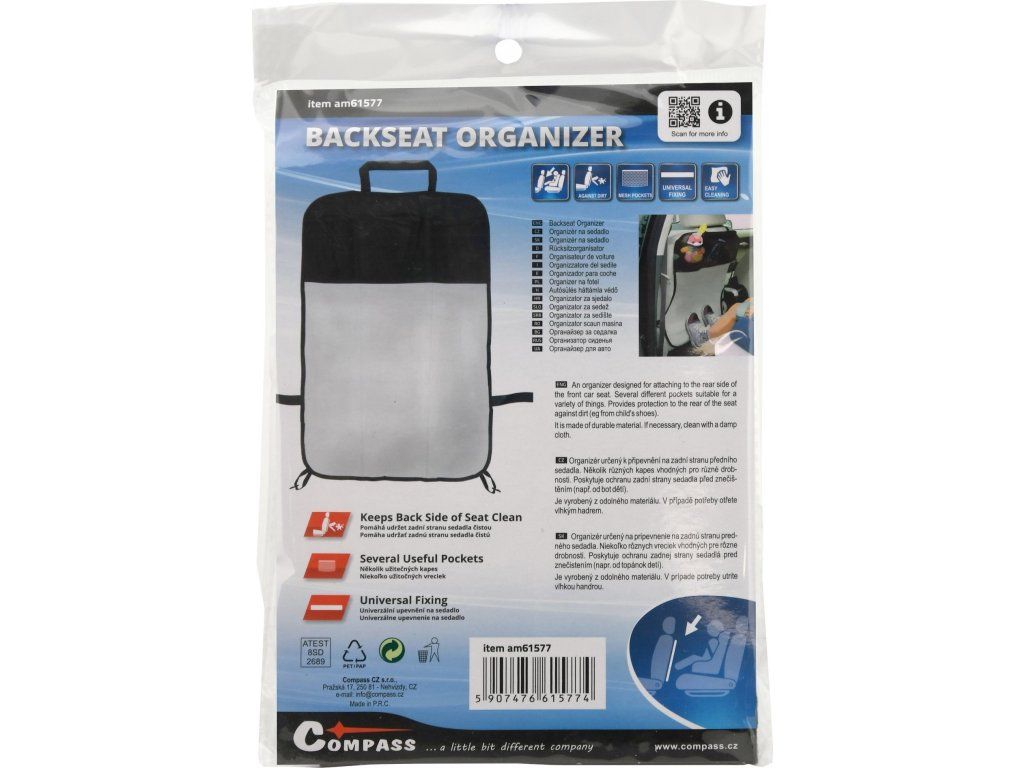 Organizér určený k připevnění na zadní stranu předního sedadla. Jedinečné uspořádání - několik různých kapes vhodných pro mapy, nápoje a různé drobnosti.