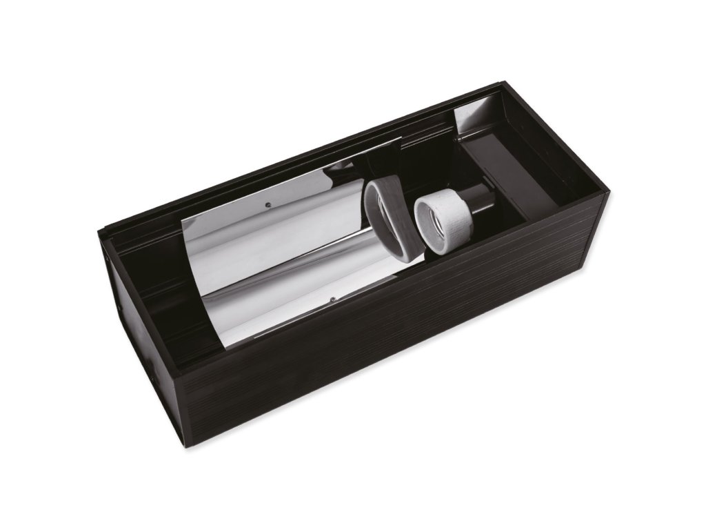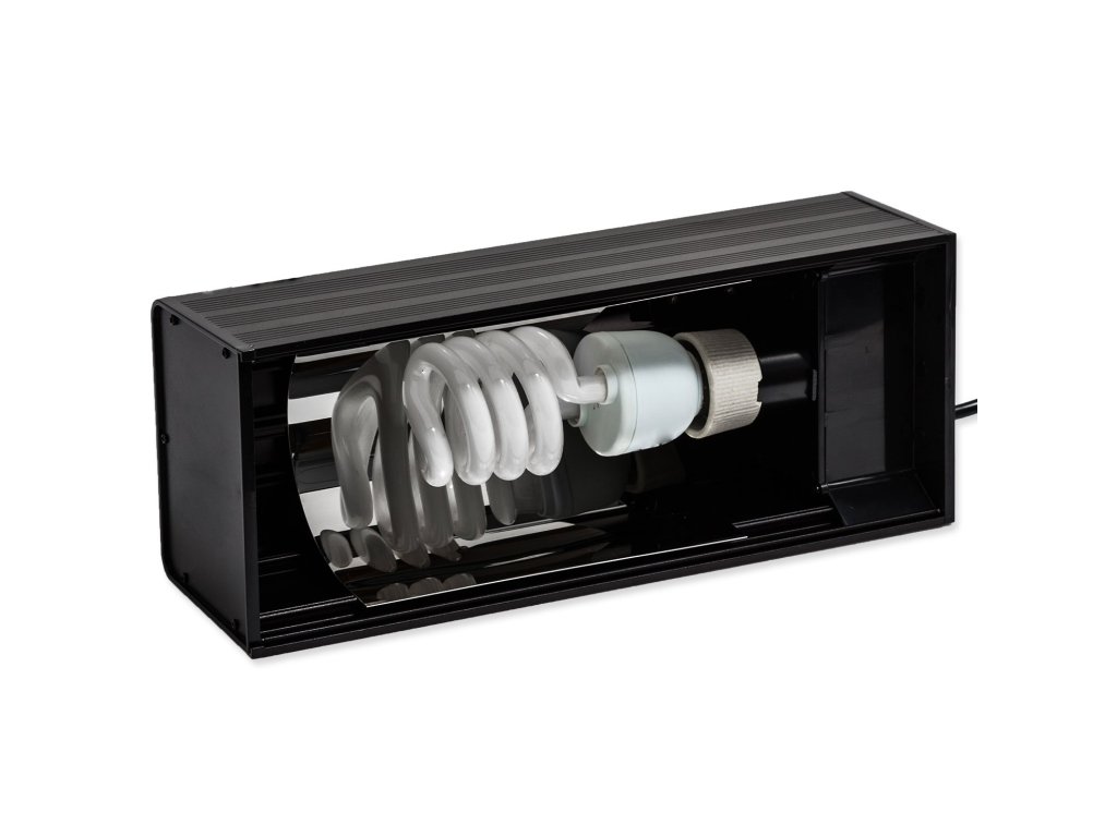 Kvalitně zpracované osvětlení pro terarijní žárovky. Konstrukce umožňuje horizontální použití žárovek, což je ideální varianta pro UVB žárovky, které touto instalací nabízejí vyšší výkon UVB záření. Pro výhřevné žárovky je tento systém nevhodný, neboť se v drtivé většině jedná o žárovky s reflektorovým systémem a žárovka by tedy ohřívala pouze vnitřní část světla a směrem dolů by neměla téměř žádnou účinnost.