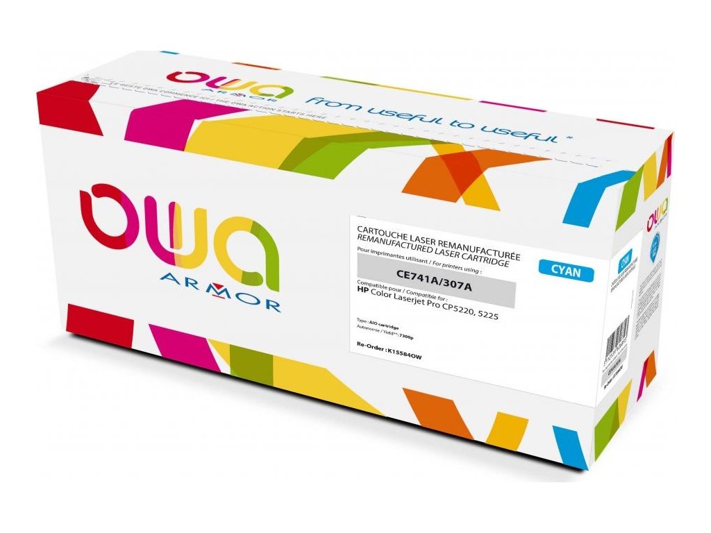 Alternativní azurová tonerová kazeta ARMOR s označením K15584 je kompatibilní s originální kazetou HP CE741A a je určena pro laserové zařízení Hewlett Packard LJ CP5225. Tato alternativa umožňuje vytištění až 7 300 stran při 5% pokrytí (dle normy pro testování výtěžnosti ISO/IEC 19752).