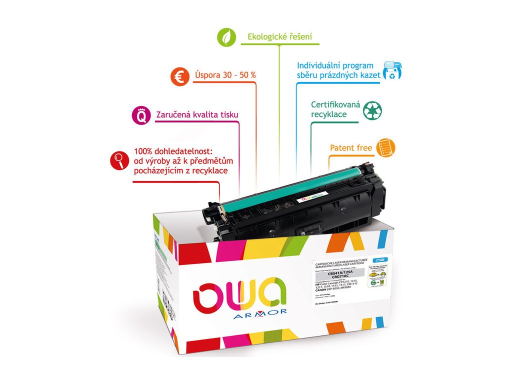 • Tonery OWA ARMOR vám umožňují splnit požadavky společenské odpovědnosti firem (CSR) v oblasti ochrany životního prostředí.