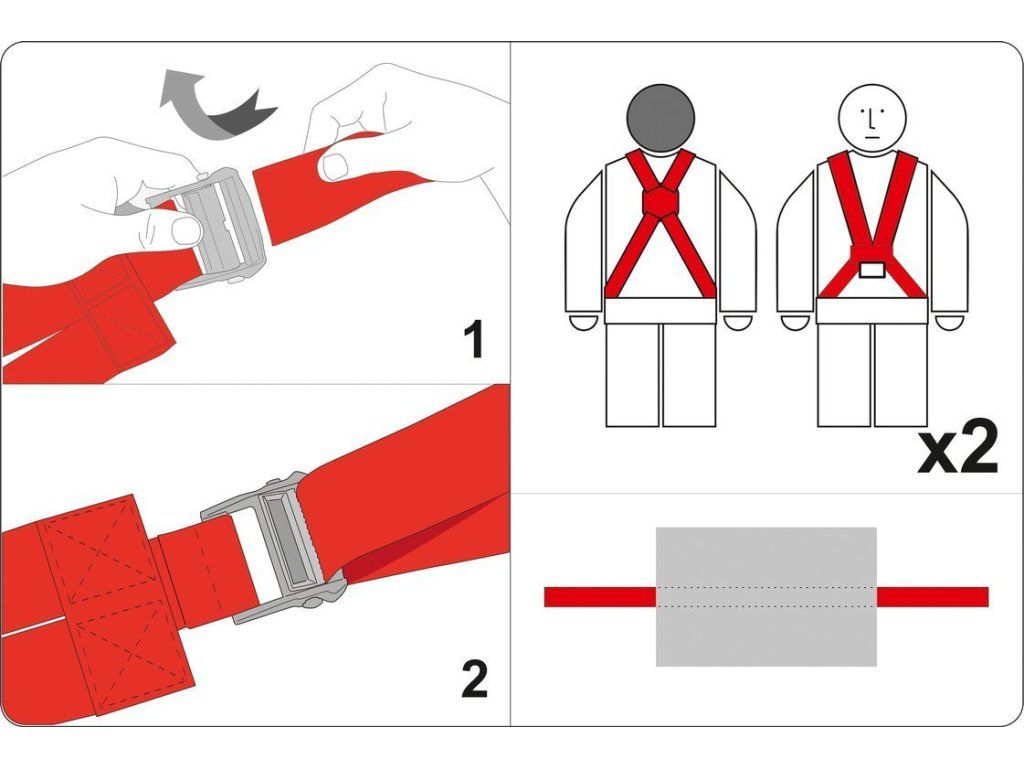 Pásy, v závislosti na modelu, nasazené na záda / jako postroj / nebo na předloktí, dokonale usnadňují přenos těžkých, velkých předmětů, snižují námahu a zvyšují bezpečnost práce a chrání přenášený nábytek před poškozením. Rozměry cca 5 x 370 cm.