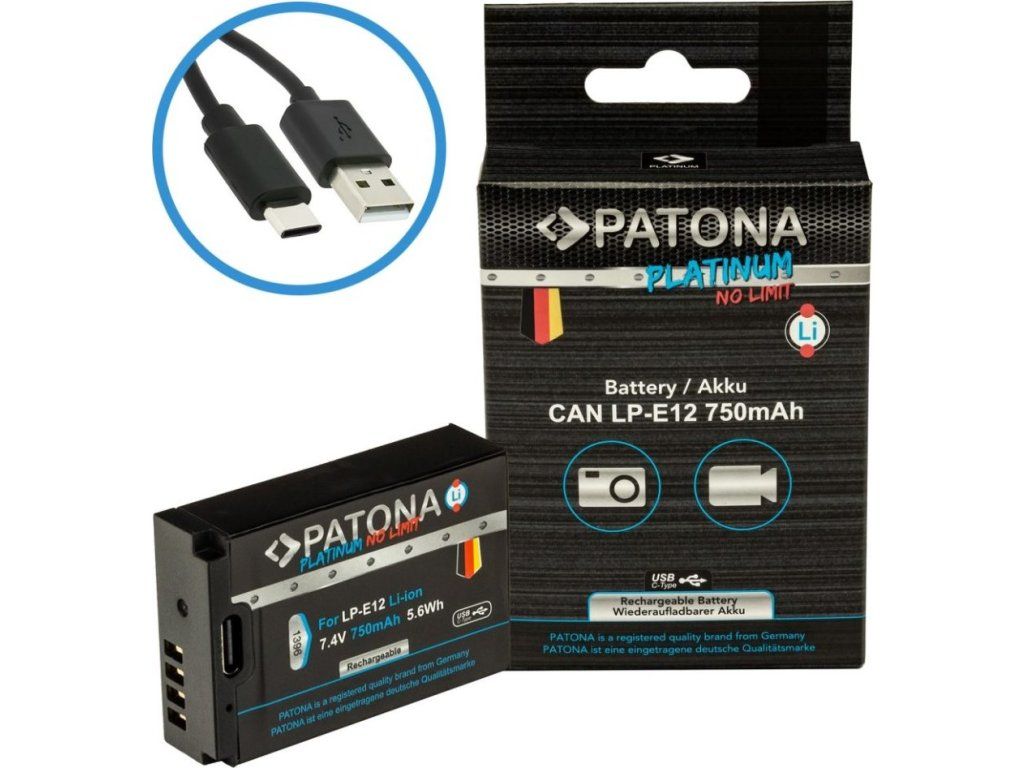 PATONA baterie pro foto Canon LP-E12 750mAh Li-Ion Platinum USB-C nabíjení