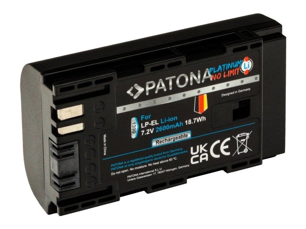 PATONA PLATINUM kompatibilní s Canon LP-ELKompatibilní baterie pro blesk Canon Speedlite EL-1. Baterie se vyznačují vysokou kvalitou, mají integrovanou ochranu proti přetížení, přebití a přehřívání.