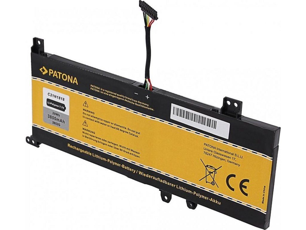 PATONA pro ASUS VivoBook X412 3800 mAhBaterie vyznačující se vysokou kvalitou. Disponuje integrovanou ochranou proti přetížení a přebití. Je osazena vysoce kvalitními články a je 100 % identická s originální baterií. Všechny baterie Patona jsou vyráběny podle nejvyšších evropských standardů kvality.