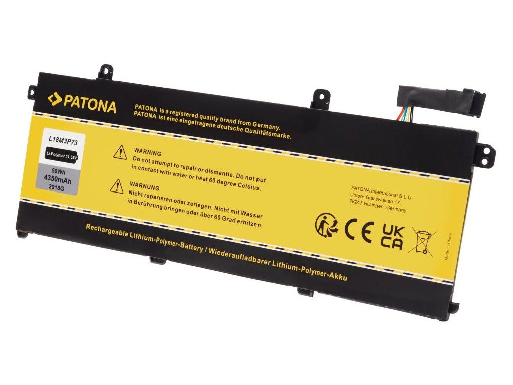 PATONA pro Lenovo ThinkPad P43S/T490 4350 mAhBaterie vyznačující se vysokou kvalitou. Disponuje integrovanou ochranou proti přetížení a přebití. Je osazena vysoce kvalitními články a je 100% identická s originální baterií. Všechny baterie Patona jsou vyráběny podle nejvyšších evropských standardů kvality.