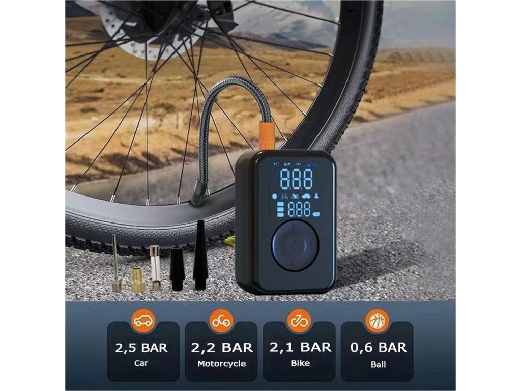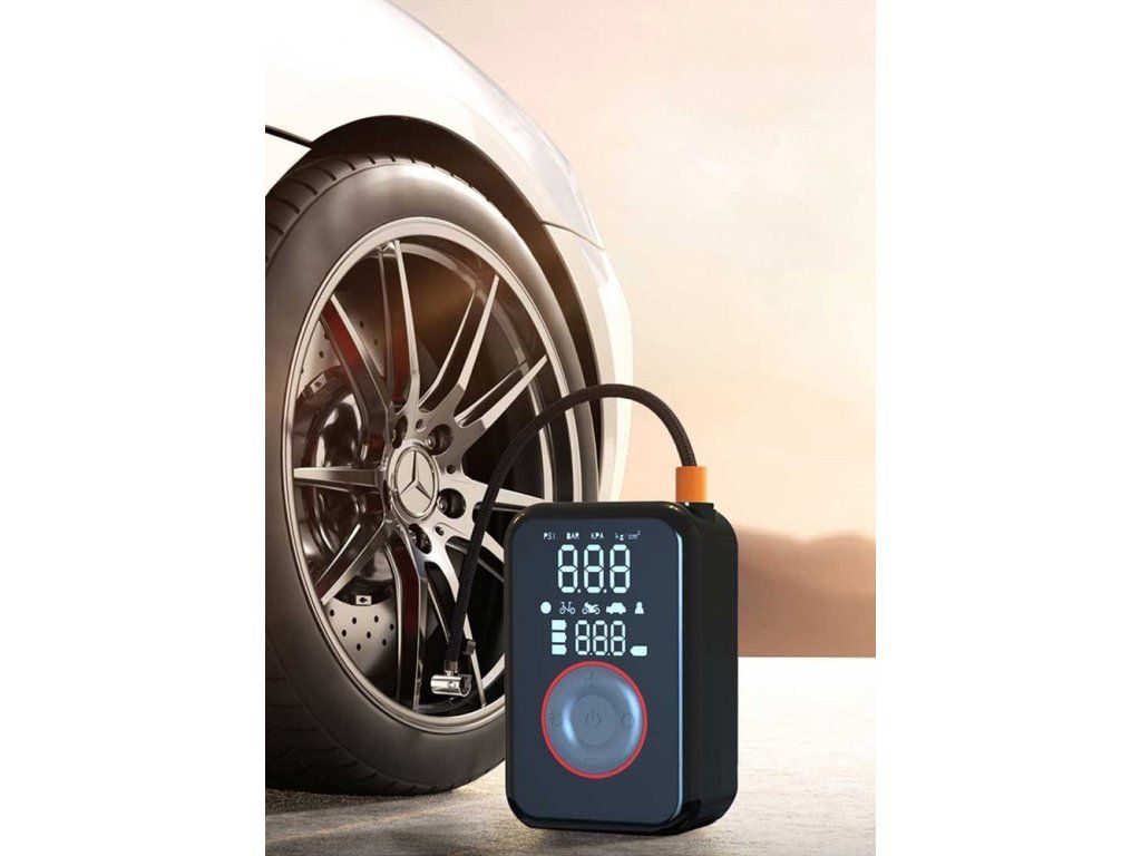 Tento kompaktní elektrický mini kompresor je ideálním společníkem na cesty. S maximálním tlakem 10,3 bar (150 PSI) a výkonem 84 W snadno nahustíte pneumatiky kol, motorek, automobilů, míče, nafukovací matrace a další předměty. Díky integrované baterii s kapacitou 4000 mAh funguje zcela bezdrátově, a navíc slouží jako powerbanka pro nabíjení mobilních zařízení přes USB výstup (5 V / 2 A).