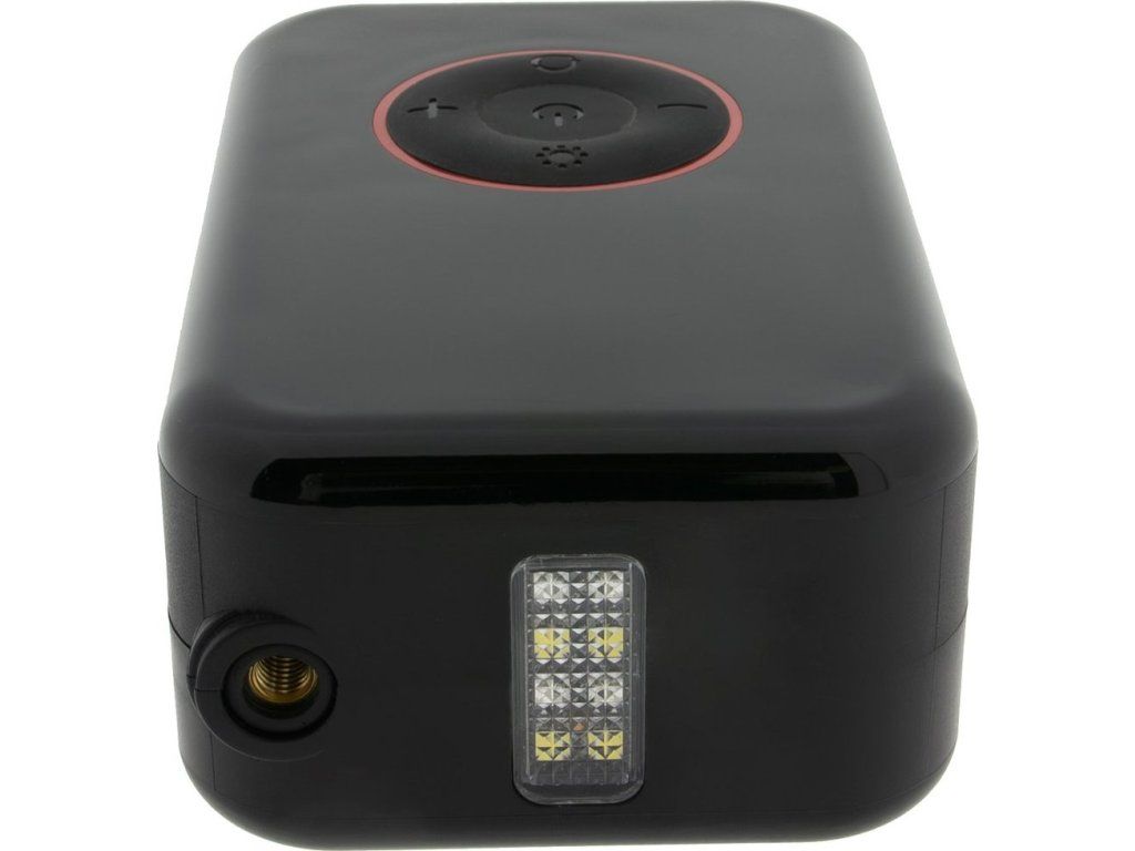 Vestavěná baterie s kapacitou 4000 mAh slouží nejen pro napájení kompresoru, ale také jako powerbanka pro nabíjení mobilních zařízení přes USB-A výstup. Integrovaná LED svítilna poskytuje dostatečné osvětlení při práci v noci nebo za snížené viditelnosti. Červené SOS světlo lze využít jako výstražný signál v nouzových situacích.