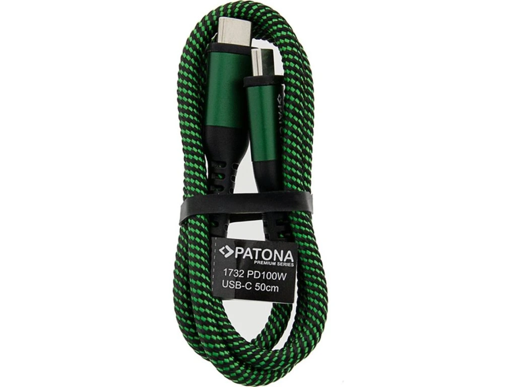 Patona USB-C PD 100 W 0,5 mKabel s kvalitním opletením vhodný pro nabíjení zařízení s konektorem USB-C. Podporuje standard nabíjení Power Delivery 100 W a přenos dat rychlostí až 480 Mb/s.