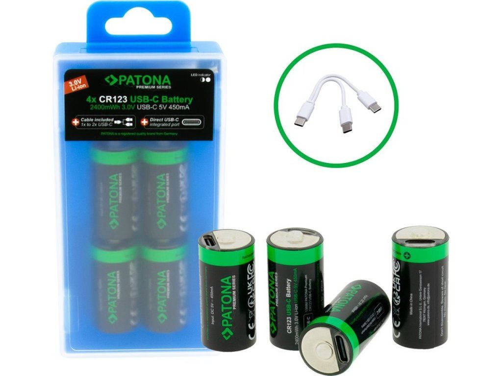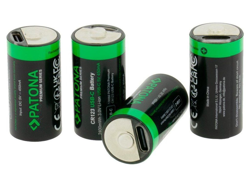 PATONA nabíjecí baterie CR123A Li-lon 800mAh 3,0 V s USB-C nabíjením, 4ks v balení