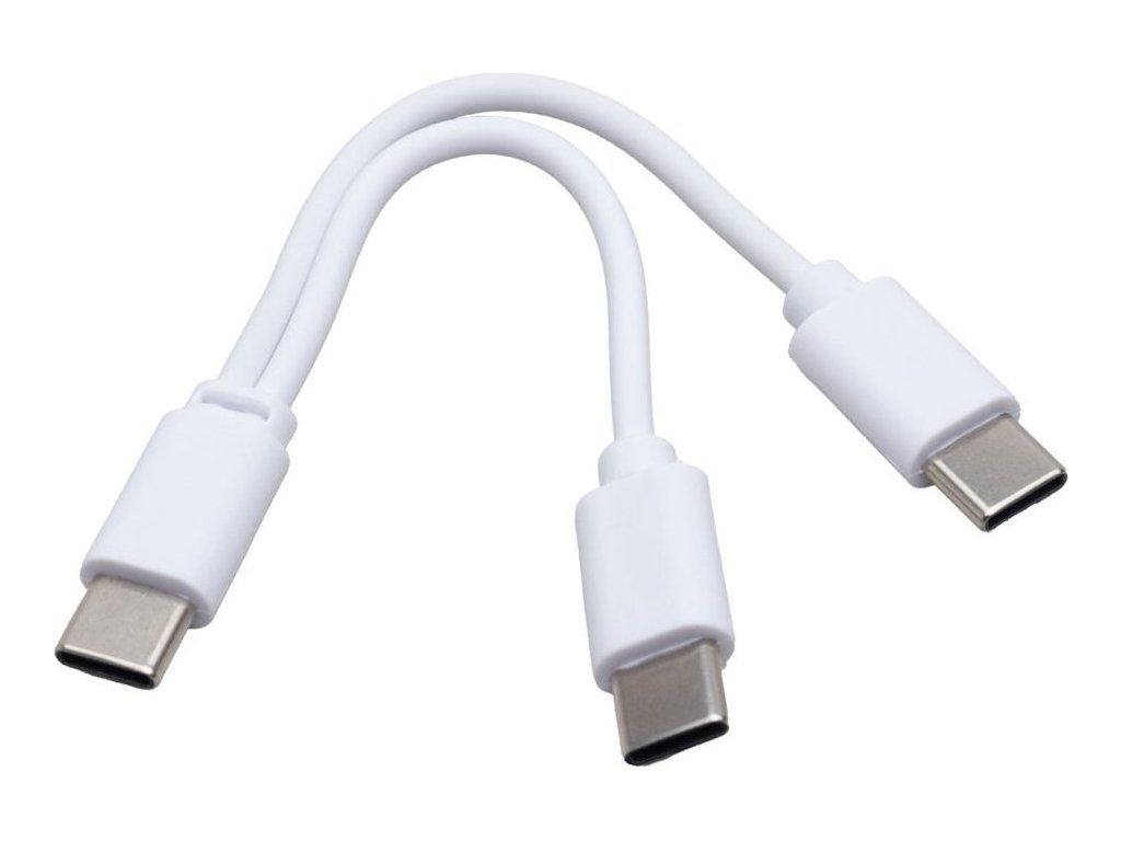 Balení obsahuje 4 kusy baterií a nabíjecí kabel USB-C na 2× USB-C.