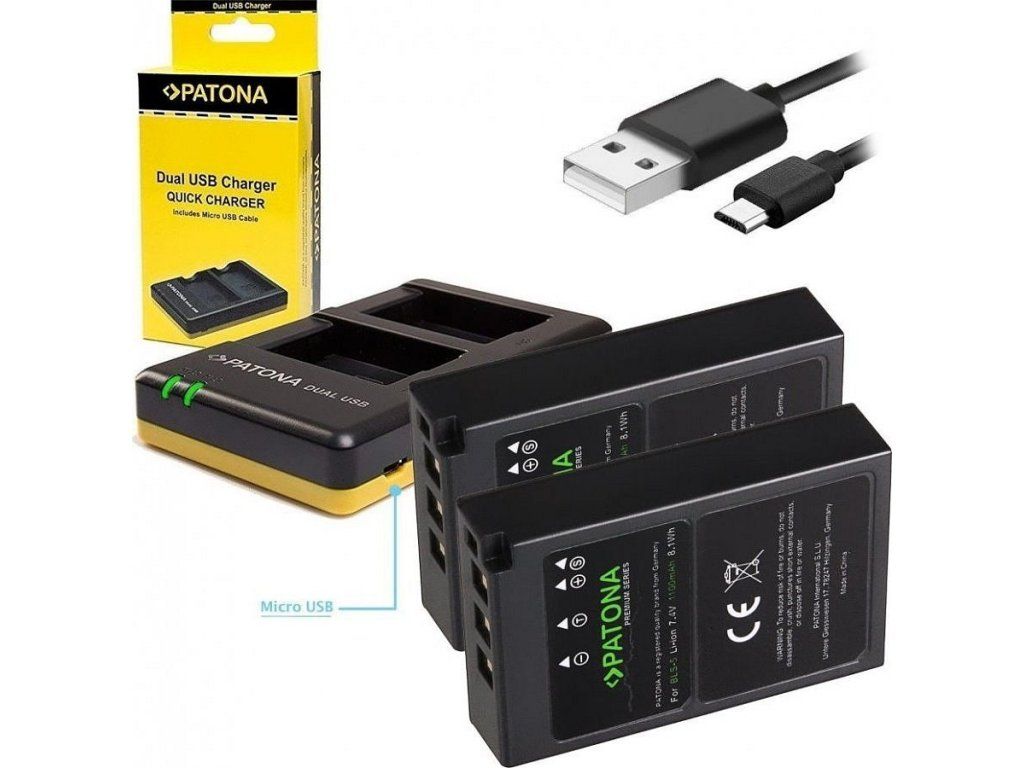 PATONA nabíječka Foto Dual Quick Olympus BLS5 + 2x baterie 1100mAh USB