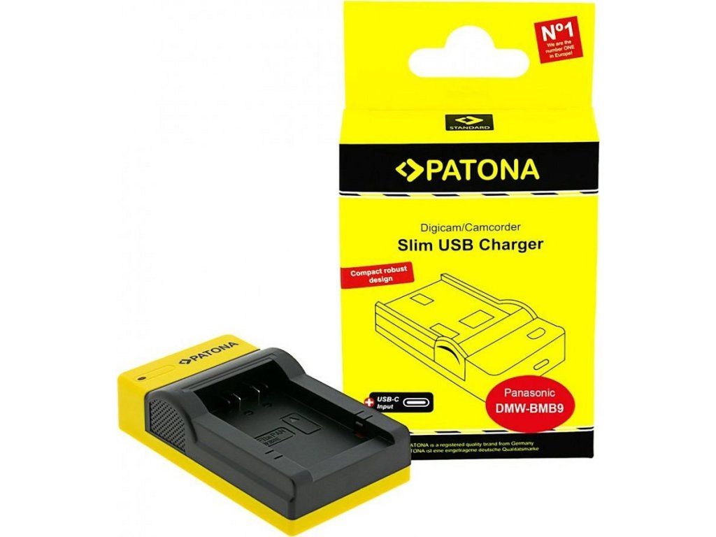 PATONA Foto Panasonic DMW-BMB9S rychlonabíječkou Patona lze nabíjet pomocí USB-C kabelu. Je vybavena ochranou proti přehřátí a přebíjení. LED dioda indikuje nabíjení baterie. Nabíječky jsou vyráběny dle nejvyšších evropských standardů kvality a vyznačují se extrémně dlouhou životností.