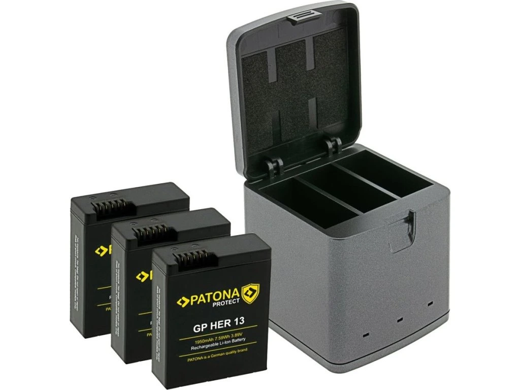 PATONA nabíječka Triple GoPro Hero 13 + 3× baterie 1950 mAhS touto uzavíratelnou nabíječkou PATONA Triple lze nabíjet tři baterie současně. Pro napájení slouží konektor USB-C. Nabíječky jsou vyráběny dle nejvyšších evropských standardů kvality a vyznačují se extrémně dlouhou životností. Samozřejmostí je ochrana proti přehřátí a přebíjení.