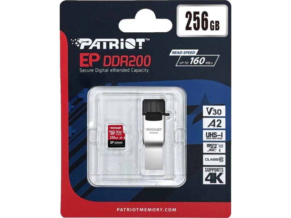 Patriot EP DDR200 + čtečka/Micro SDXC/256GB/UHS-I U3 / Class 10