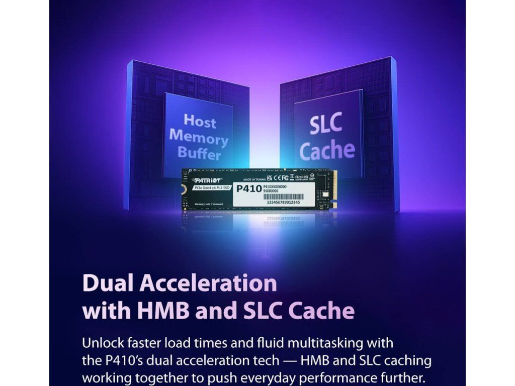 Design s vysoce účinným tenkým grafenovým chladičem je navržen s ohledem na efektivní chlazení a celkově optimální tepelný management. Technologie SmartECC se postará o ochranu a integritu dat. Mezi další přednosti patří nízká spotřeba energie a méně produkovaného tepla. Také díky tomu je SSD jednotka Patriot P410 ideálním úložiště pro notebooky, případně další přenosná a kompaktní zařízení. Disponuje úložištěm 500 GB a představuje tak optimální kapacitu pro ukládání filmů, videí, her nebo pracovních projektů.