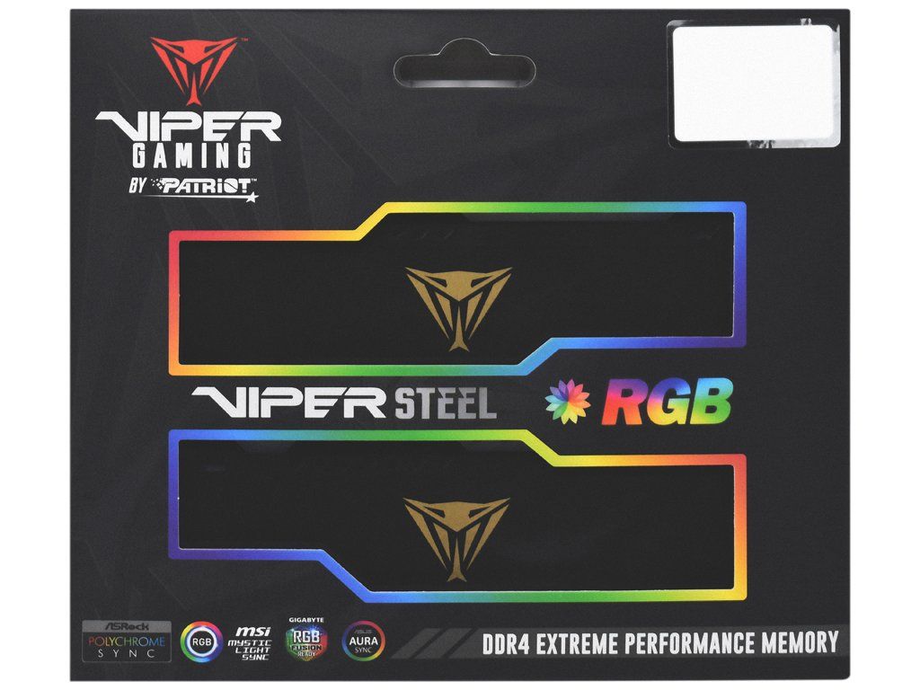Patriot Viper Steel RGB DDR4 16 GB 3200 MT/sOperační paměť typu DDR4 pro stolní počítače o velikosti 16 GB. Dosahuje datového přenosu 3200 MT/s s časováním 16-20-20-40. Paměť disponuje chladičem a podporuje XMP 2.0 profil. Potěší také plně přizpůsobitelné RGB LED podsvícení kompatibilní se systémy ASUS Aura Sync, ASrock Polychrome Sync, MSI Mystic Light Sync a Gigabyte RGB Fusion Ready. Balení obsahuje dva kusy 8 GB paměti.