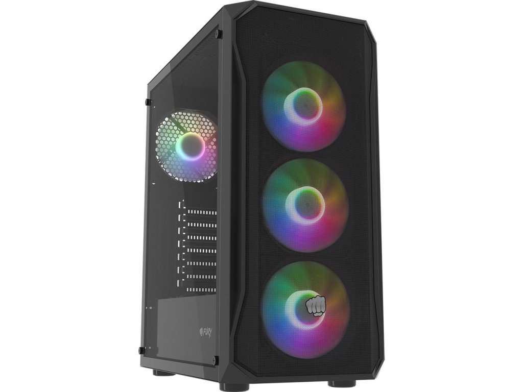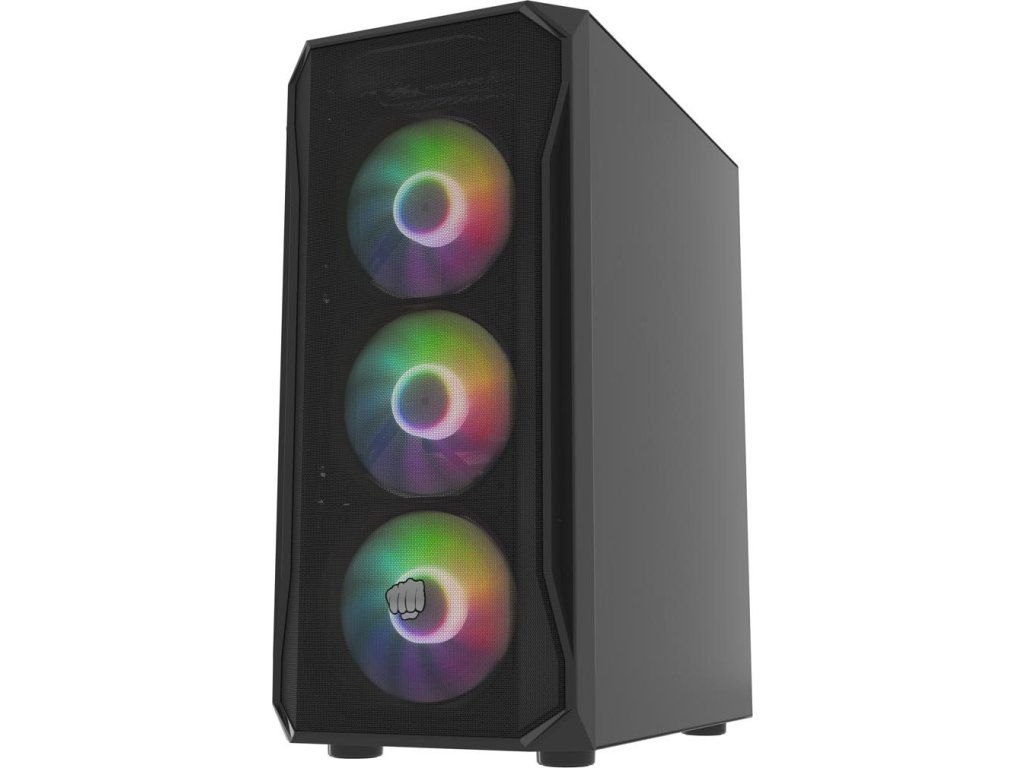 Futuristický geometrický tvar se bude líbit jak hardcore hráčům, tak i těm, kteří dávají přednost decentnějšímu designu. Levý boční panel z tvrzeného skla je příležitostí k odhalení vnitřku skříně a výkonných komponent ukrytých uvnitř - také s RGB, zejména proto, že instalované ventilátory jsou předsvětlené.