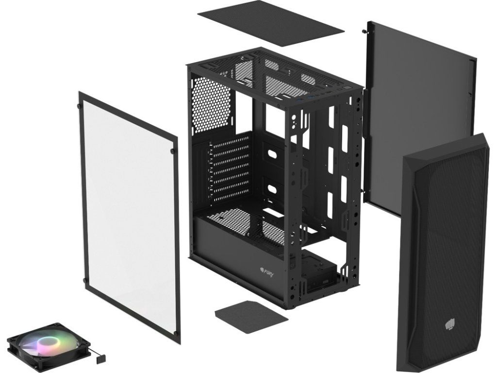 Podívejte se na Fury Shobo SH4 RGB - chytrou počítačovou skříň s vysokým ventilačním potenciálem (120 mm RGB ventilátor). Skříň Shobo SH4 RGB je kompatibilní se základními deskami ATX a systémy vodního chlazení (AIO 360/280/240/140/120), má síťovanou přední část, otevřenou horní část, prostor pro celkem 8 ventilátorů a protiprachovou ochranu. Vytvořte si počítač svých snů!