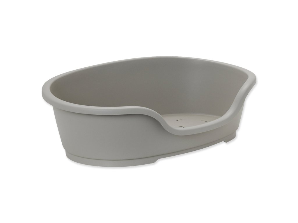 Oválný plastový pelíšek s větracími otvory ve spodní části.