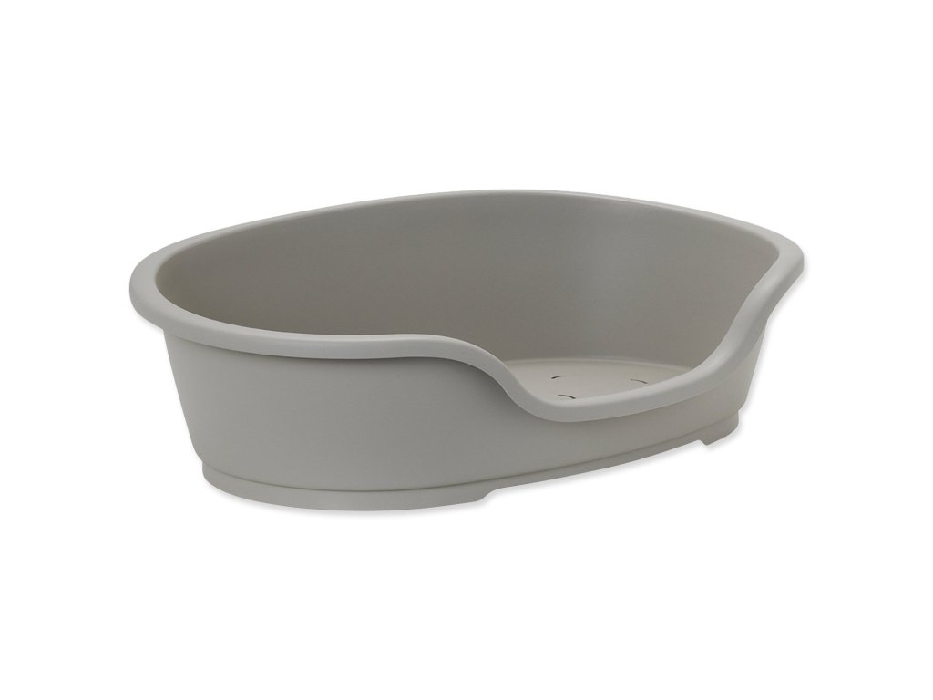 Oválný plastový pelíšek s větracími otvory ve spodní části.