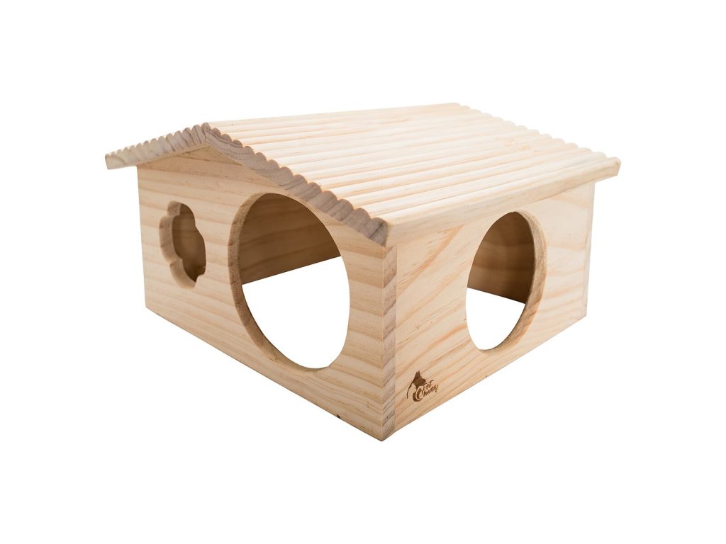- domek pro hlodavce v designu roubené chaloupky