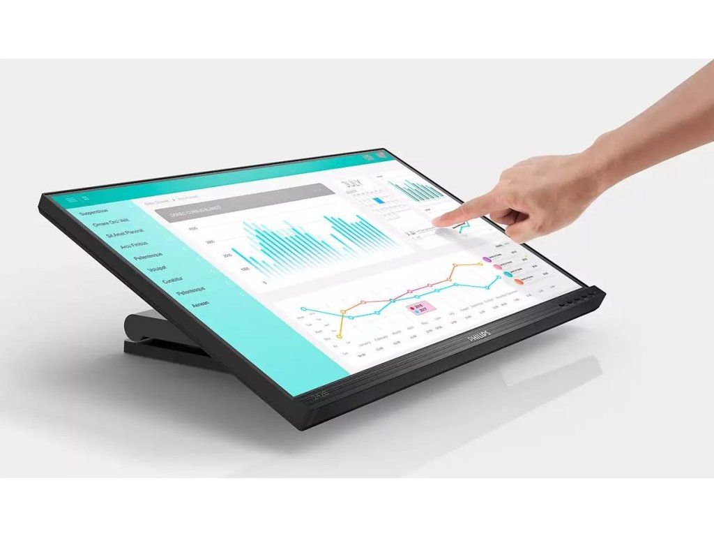 Odolná dotyková antireflexní obrazovka pro flexibilní použití, s otočným stojanem a nastavením úhlu podle potřeby. Pokročilá technologie In-Cell Touch (AIT) nabízí tenčí vzhled, vynikající citlivost na dotek pro rychlou odezvu a vynikající a zřetelnější viditelnost