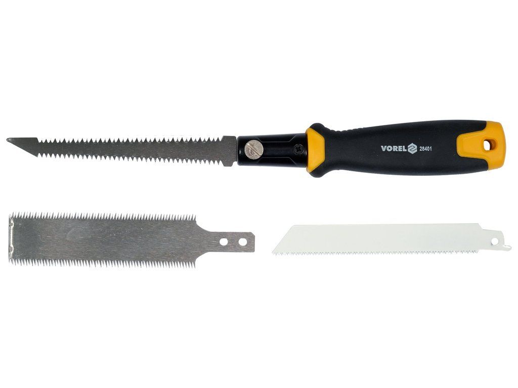 Ruční pila se třemi vyměnitelnými pilovými listy. Pilové listy lze snadno vyměnit bez použití nářadí do dvousložkové rukojeti. Doporučeno pro přesné a modelářské práce.