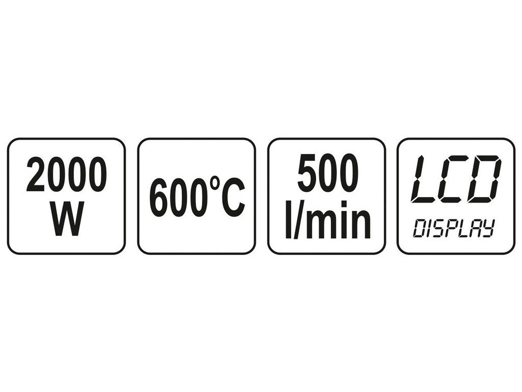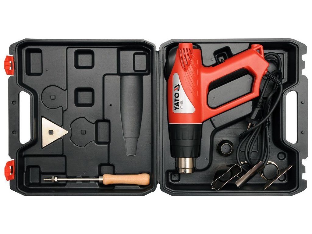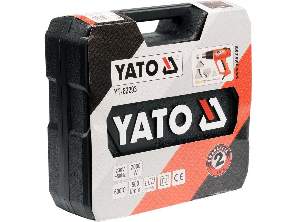 Klasická kvalitní horkovzdušná pistole Yato s třemi stupni výkonu, přičemž stupeň II a III má plynulou regulaci teploty. Teplota je zobrazována přesně na vestavěném LCD displayi. Pistole je vybavena čtyřmi usměrňovacími tryskami a škrabkou pro opalování starých nátěrů.