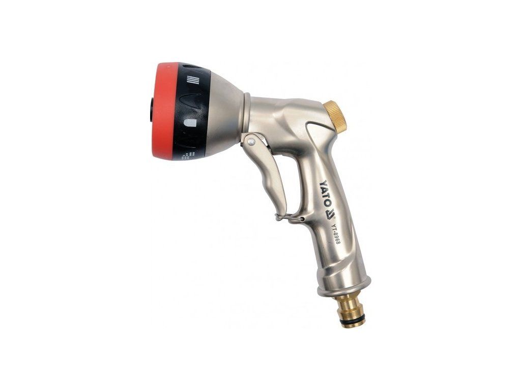Postřikovací pistole se sedmi nastavitelnými funkcemi (podlévání, plochý, mlha, sprcha, proud, kužel, středový), regulací průtoku a uzamknutím pro trvalý průtok. Pohodlné připojení hadic rychlospojkou 1/2". Vyrobená z mosazi. Nejlepší poměr cena kvalita. Dlouhá životnost.