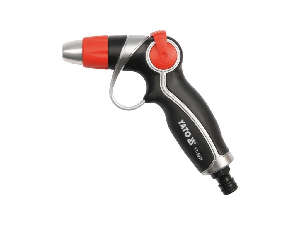 Postřikovací pistole, kterou lze nastavit na jeden ze tří druhů střiku: přímý proud, jemný mlhový střik a kuželový střik. Je vyrobená z kvalitního ABS materiálu a hliníku. Osazená rychlospojkou pro snadné a rychlé připojení a odpojení. Možnost regulace průtoku vody.