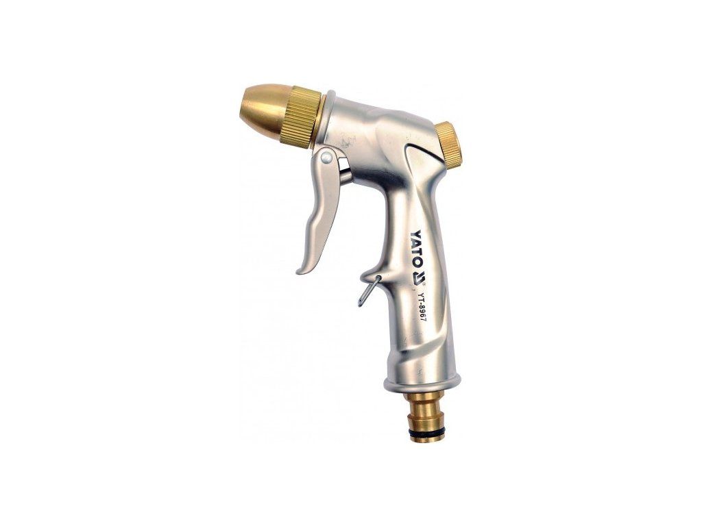 Postřikovací pistole se dvěmi nastavitelnými funkcemi (proud, mlha), regulací průtoku a uzamknutím pro trvalý průtok. Pohodlné připojení hadic rychlospojkou 1/2". Nejlepší poměr cena kvalita. Dlouhá životnost. Materiál mosaz.