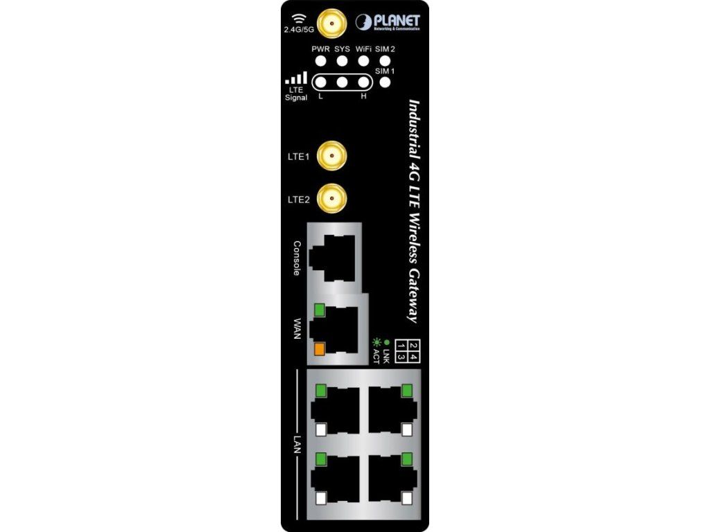 Planet IoT/M2M průmyslová brána, 1xWAN+3xLAN 1Gb, 2xLTE, WiFi ac, 3xCOM, I/O, DIN, IP30, -35/+75C, 9-36VDC