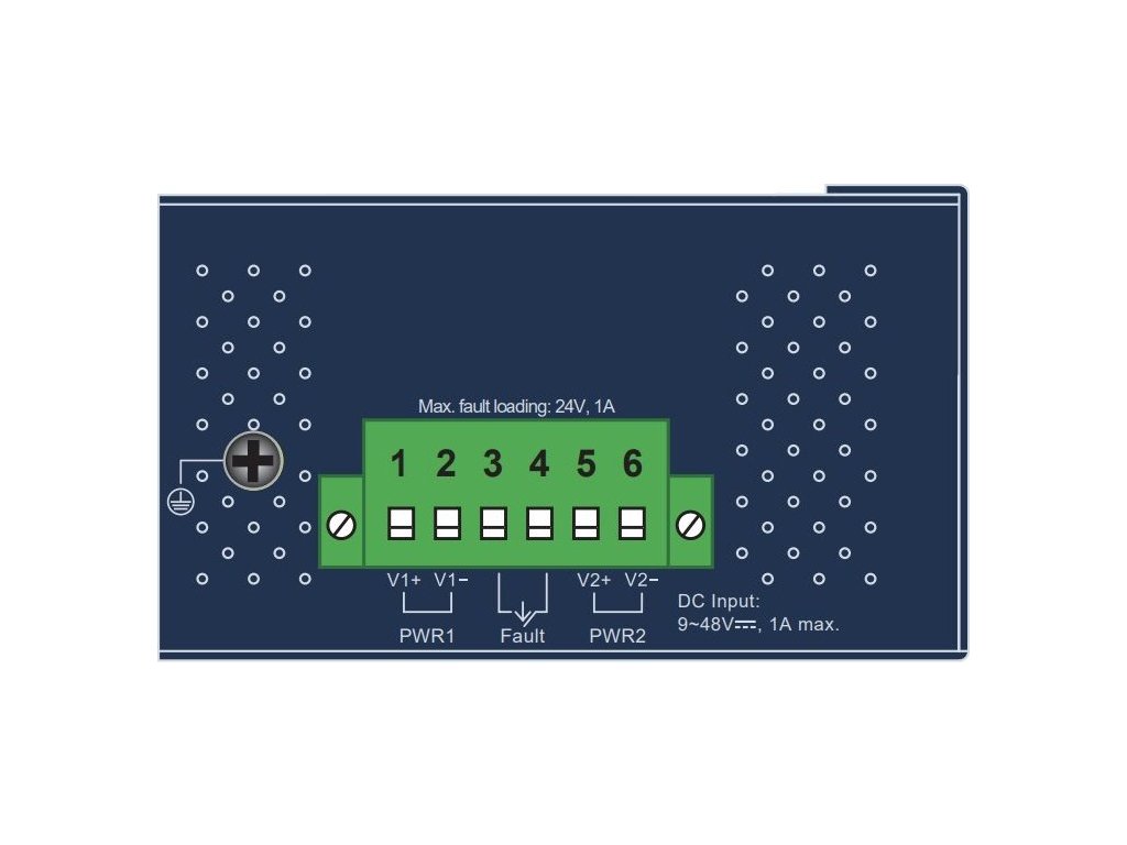 Napájení: zdroj DC 9–48 V, redundantní, 6pin terminál, celkový příkon do 9 W (zdroj není součástí balení)