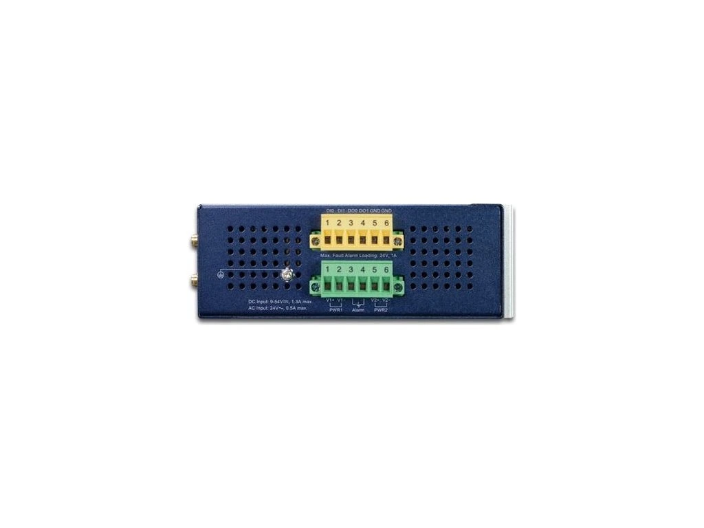 Napájení: redundantní, 2x DC 9-54 V (max. 1,3 A), celkový příkon do 12,5 W (zdroj není součástí balení), napájecí vstupy jsou vzájemně zálohované