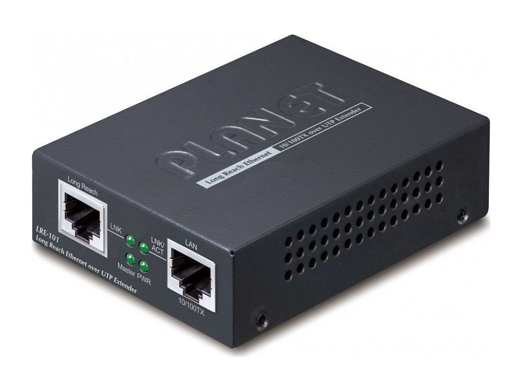 PLANET LRE-101Ethernet extender k prodloužení segmentu Ethernet ze 100 m na vzdálenost až 800 m po UTP (až 1200 m pro RJ-11 při rychlosti 11/6 Mbps). Určen především pro dálkový Ethernet (LRE), které poskytuje rychlou náhradu a bezproblémové řešení přechodu ze stávajícího analogového systému na plně digitální systém.
