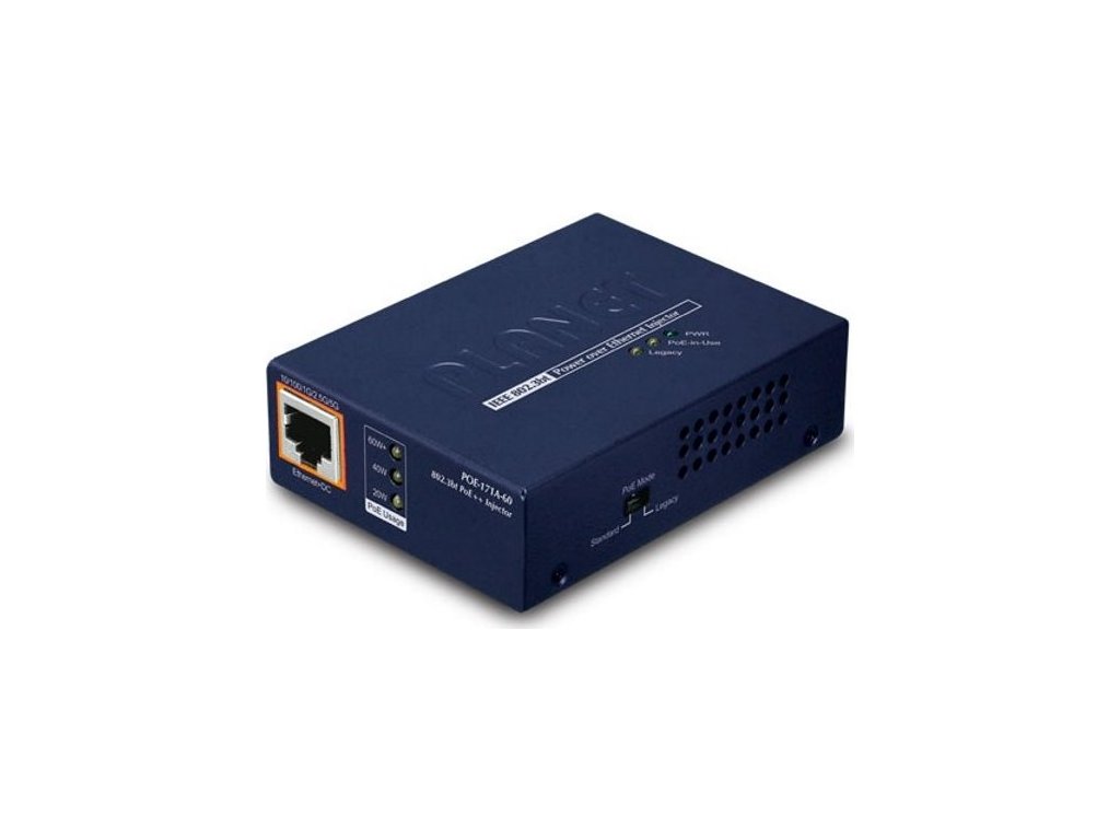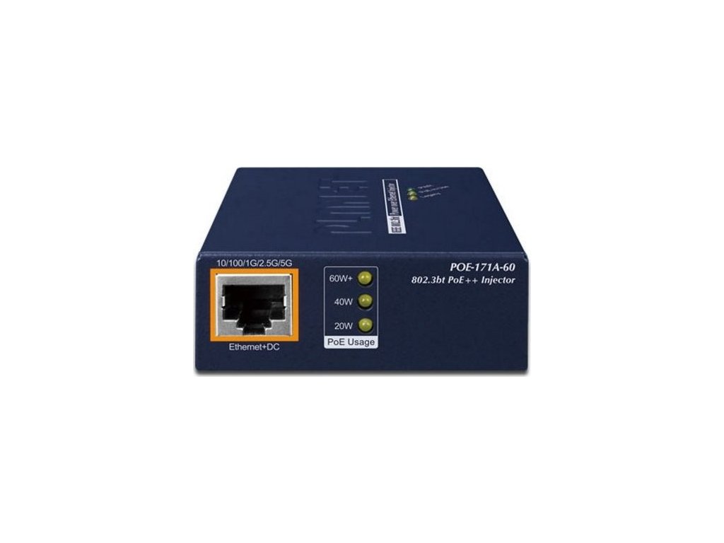PLANET POE-171A-60Jednoportový PoE injektor pro napájení po Ethernetovém kabelu dle IEEE 802.3bt do příkonu až 60 W.