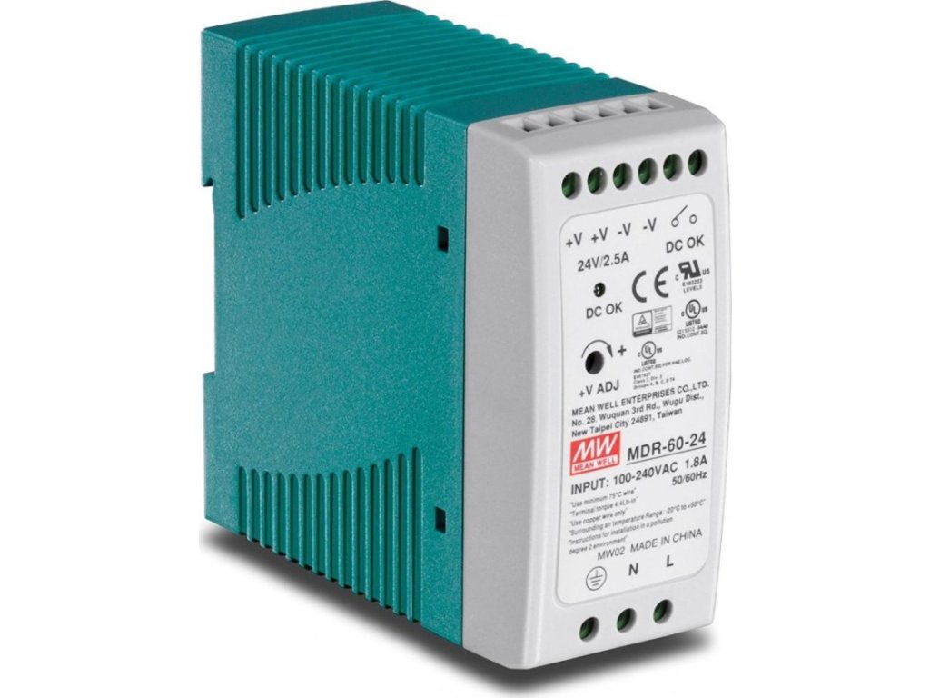 Výstupní napětí 24V DC, zatížitelnost 60W.