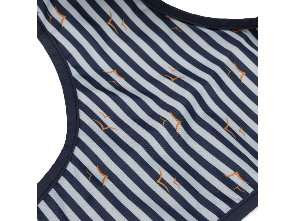 Pláštěnka s vyšším krkem. Nastavitelná kolem krku a přes břicho.