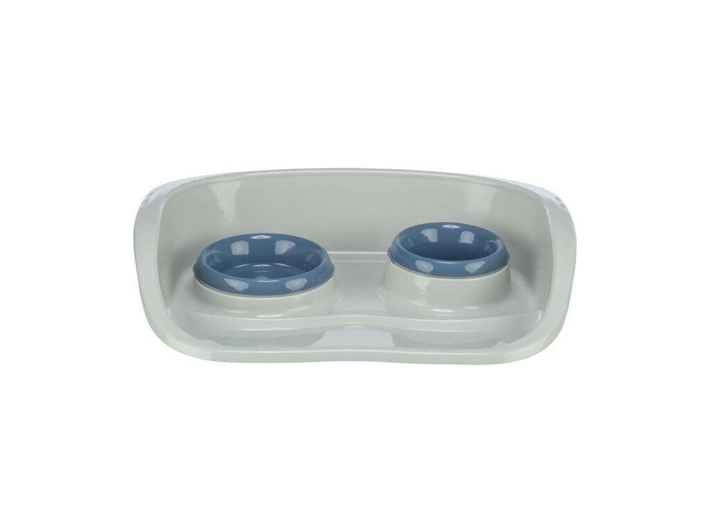 Plastový bar se 2 miskami (0,25 l/ 9cm a 0,3 l/11cm), 46x11x30 cm, šedá/různé