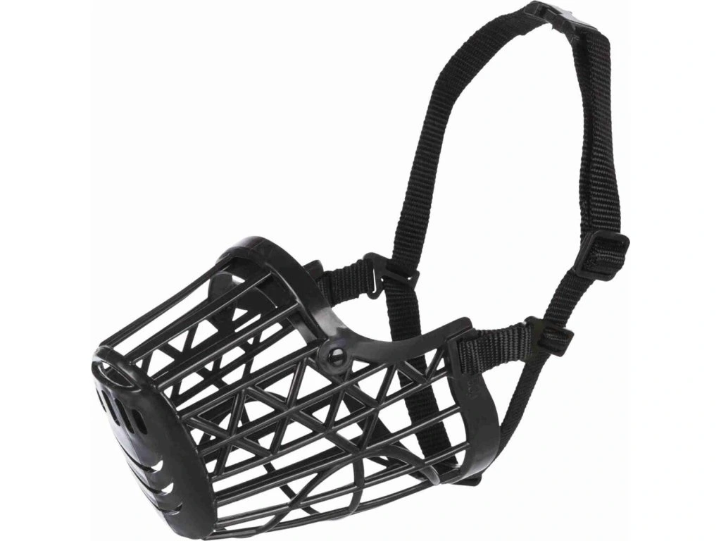 - nastavitelný nylonový pásek kolem krku pro zapnutí náhubku