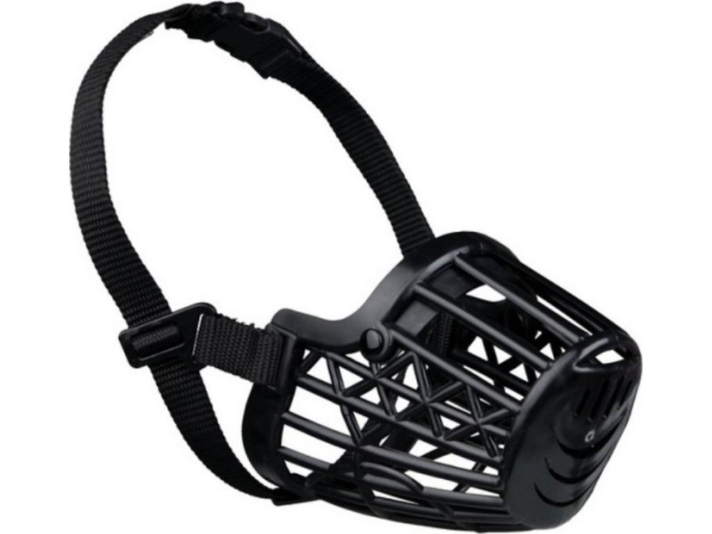 - nastavitelný nylonový pásek kolem krku pro zapnutí náhubku