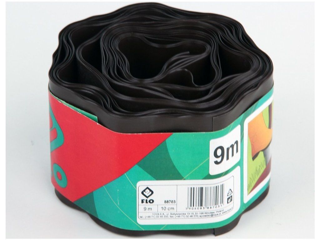 Plastový okraj trávniku. Vysoký 100mm, dlouhý 9m. Hnědá barva.