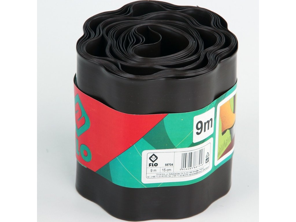 Plastový okraj trávniku. Vysoký 150mm, dlouhý 9m. Hnědá barva.