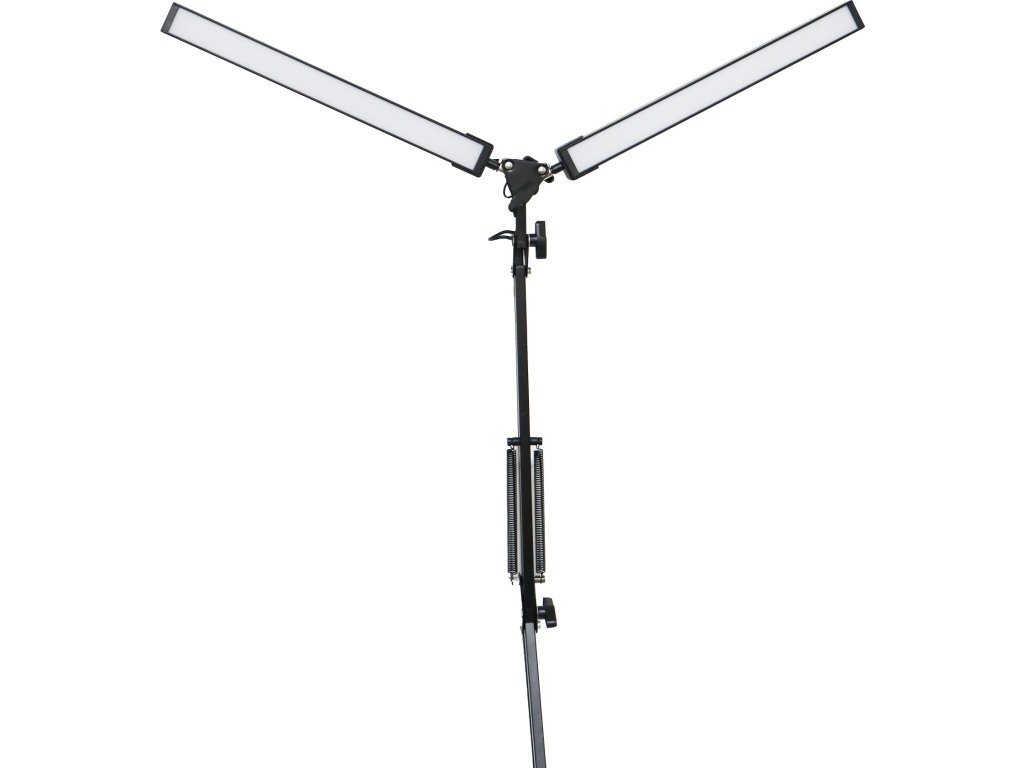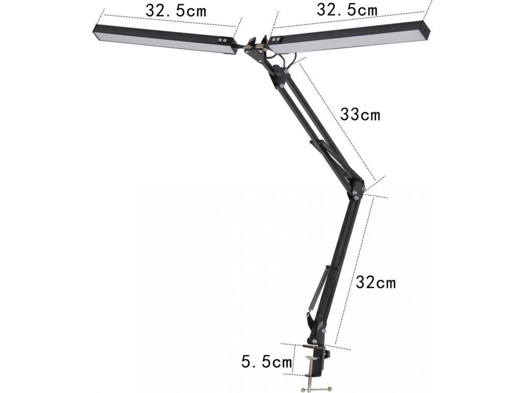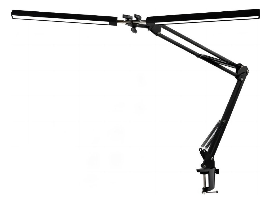 Lampa je vybavena dvěma samostatnými rameny, z nichž každé je zakončeno 35 cm dlouhým světelným panelem. Ramena jsou plně nastavitelná díky sedmi kloubovým spojům, což umožňuje dokonalé nasměrování světla podle aktuálních potřeb – ať už pracujete, tvoříte, nebo čtete.