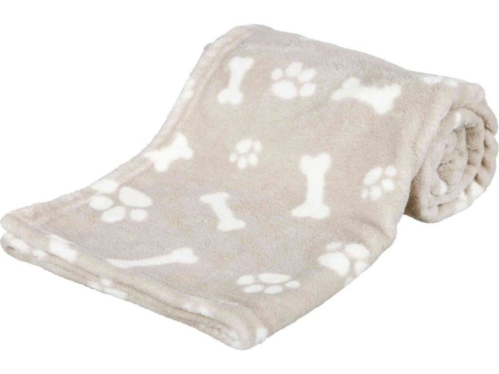 Plyšová deka KENNY, béžová s kostičkami a packami