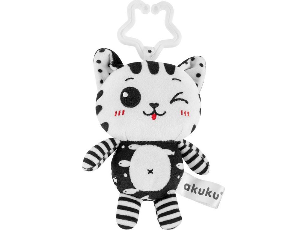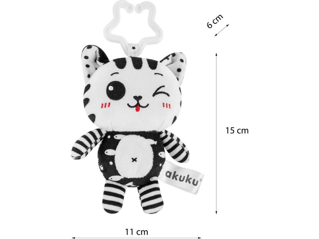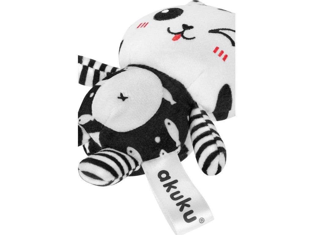 Plyšová hračka s chrastítkem Akuku kočička černobílá