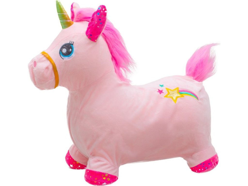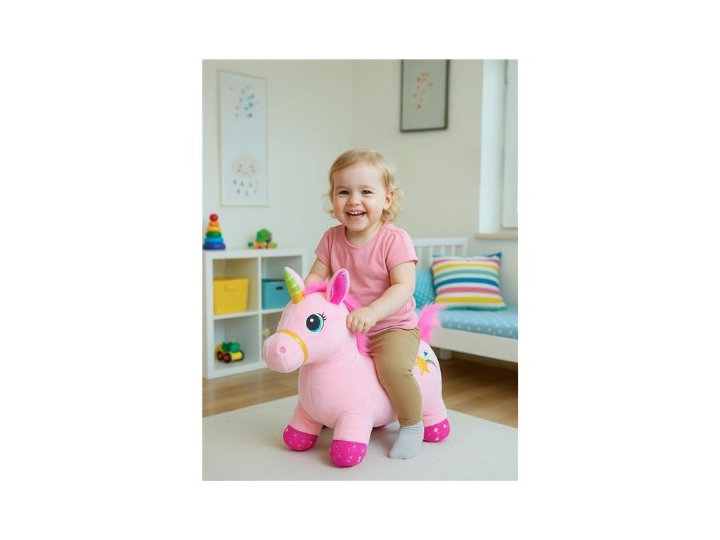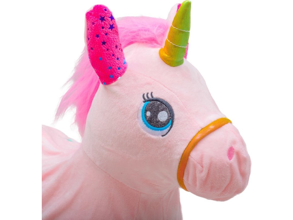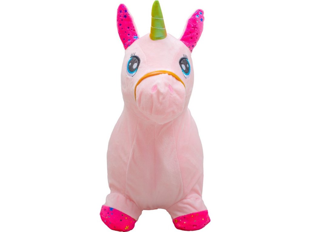 Plyšové nafukovací hopsadlo je zárukou dlouhotrvající zábavy pro Vaše dítě. Hopsadlo se pohodlně drží za uši a obsahuje zvukový modul, který po zmáčknutí mezi ušima vydává realistický zvuk koníka. Je potaženo plyšovým materiálem, který je příjemný na dotek a neklouže. Součástí balení je pumpička k pohodlnému nafouknutí a baterie (3xLR44).
