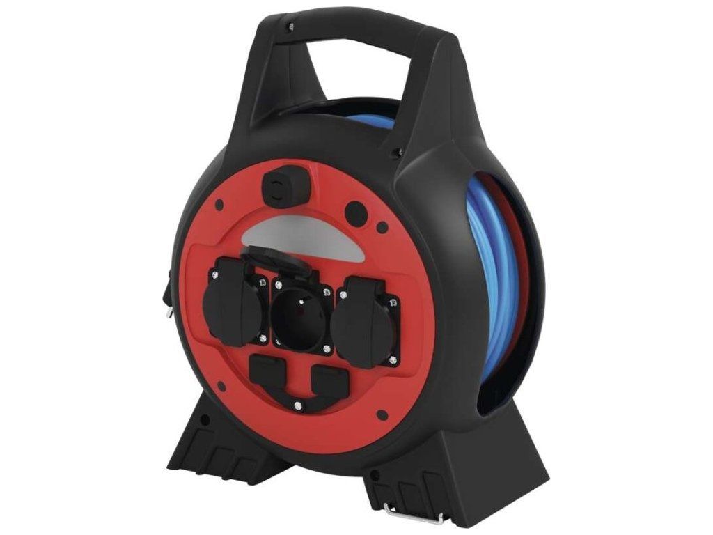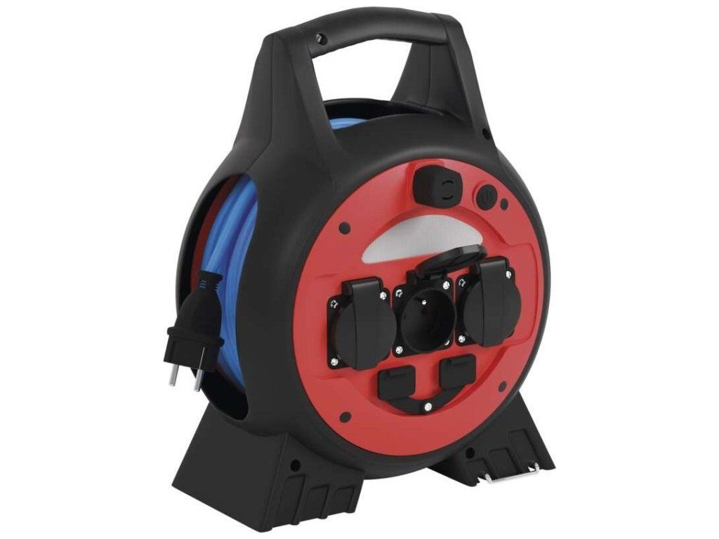 Počasí odolný prodluž. kabel na bubnu 20 m / 3 zásuvky / modrý / PVC / 230 V / 1,5 mm2